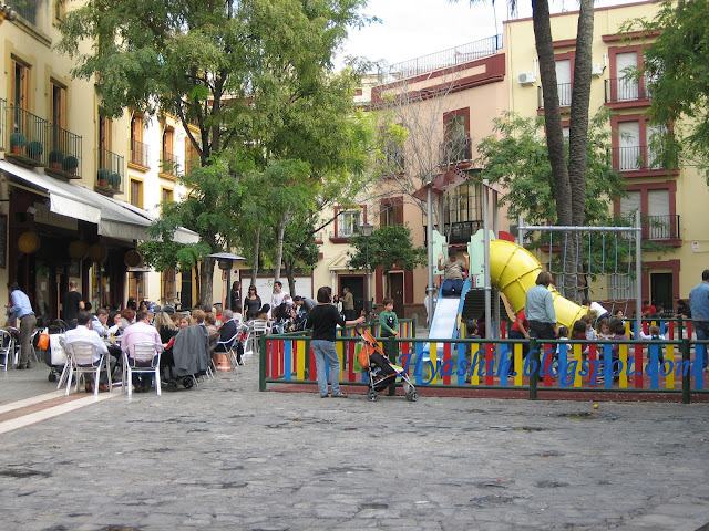 我們發現愛跟朋友聚會來一杯的西班牙人,在各酒吧區外都設有遊樂場,讓父母可以讓小孩自己去玩,也不犧牲自己的社交生活。有圖有真相: